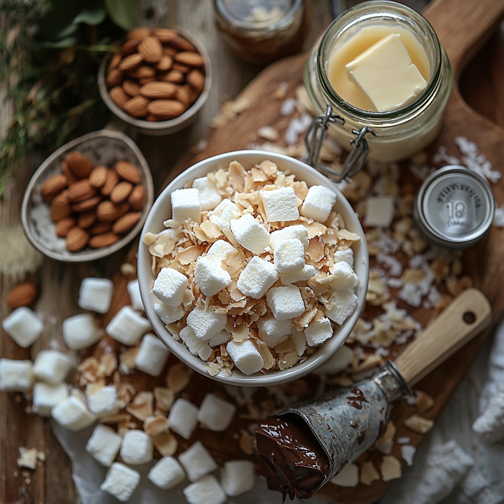 Start by preheating your oven to 375°F. Toss the shredded coconut and sliced almonds on a baking sheet, then bake them for about 6 to 10 minutes until they turn a beautiful light golden color. This toasting step is a game changer—it brings out a deep, nutty aroma and adds a crisp texture that transforms the treats from ordinary to unforgettable.