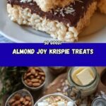 These Almond Joy Krispie Treats are a delightful twist on a classic snack, featuring toasted coconut, sliced almonds, crispy rice cereal, and a luscious chocolate topping. Made with mini vegan marshmallows and infused with pure coconut extract, they offer a perfect blend of crunchy and gooey textures with rich flavors reminiscent of the beloved Almond Joy candy bar. Perfect for parties, snacks, or a sweet treat anytime.