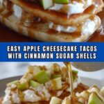 Apple Cheesecake Tacos are a delightful dessert that combine crispy cinnamon-sugar coated flour tortillas with a creamy cheesecake filling and sweet apple pie topping. Perfect for fall gatherings or anytime you crave a unique, indulgent treat with classic flavors of apple, cinnamon, and creamy vanilla cheesecake.