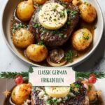 Authentic German Frikadellen are traditional pan-fried meat patties made from a combination of ground beef and pork, flavored with onions, garlic, and aromatic spices. These juicy and flavorful patties are soft on the inside with a golden, crispy crust and are perfect served with potato salad, sauerkraut, or crusty bread for a comforting German meal.