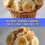 Delight in these no-bake Banana Pudding Cheesecake Cones combining creamy banana pudding cheesecake filling with crunchy waffle cones and vanilla wafers for a perfect summer treat that’s easy to prepare and irresistible.