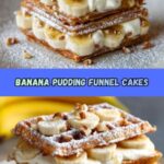 Delight in crispy, golden Banana Pudding Funnel Cakes topped with creamy vanilla pudding, whipped cream, crushed vanilla wafers, and fresh banana slices. This dessert marries the classic fair food funnel cake with rich banana pudding flavors, making it a perfect indulgent treat for any occasion.