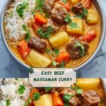 Beef Massaman Curry is a rich and aromatic Thai dish combining tender beef chunks simmered in a creamy coconut milk base with Massaman curry paste, potatoes, carrots, and fragrant spices. This comforting curry is subtly sweet, savory, and perfect served over jasmine rice.