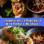 These Beef Spring Rolls with Peanut Lime Sauce offer a fresh, flavorful appetizer perfect for any occasion. Ground beef is seasoned and sautéed with garlic, ginger, and sriracha, then wrapped with shredded veggies in tender rice paper. Served with a creamy, tangy peanut lime dipping sauce, these spring rolls deliver a delightful blend of savory, spicy, and fresh flavors with an Asian-inspired twist.