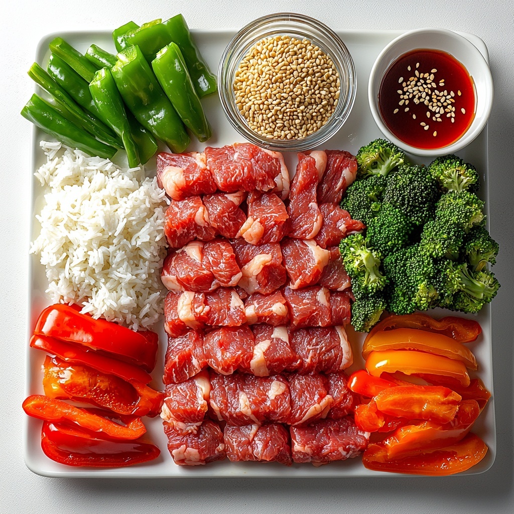 These ingredients are delightfully simple but essential to crafting the perfect balance of flavors and textures in your stir-fry. Each one plays a vital role, whether it’s the tender beef, crisp vegetables, or the rich, savory sauce that ties everything together.