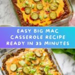 This Big Mac Casserole is a delicious and easy-to-make dish inspired by the classic Big Mac burger. Ground beef is combined with cream cheese and cheddar for a rich, cheesy base, topped with a creamy egg mixture, and baked to perfection. Finished off with a zesty sauce, shredded romaine lettuce, and dill pickles, this casserole captures all the flavors of the iconic sandwich without the bun, making it perfect for a comforting family dinner.