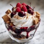 - Garnish: Sprinkle the top layer of whipped cream with dark chocolate shavings or mini chocolate chips for texture and flavor. Optionally, garnish with fresh cherries and extra chocolate pieces for added visual appeal and taste.