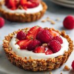 Because of the fresh fruit and yogurt topping, freezing isn’t recommended for assembled tarts as it affects texture and flavor. However, you can freeze the baked granola crusts separately in a sealed bag or container, then thaw and fill them when ready to serve.