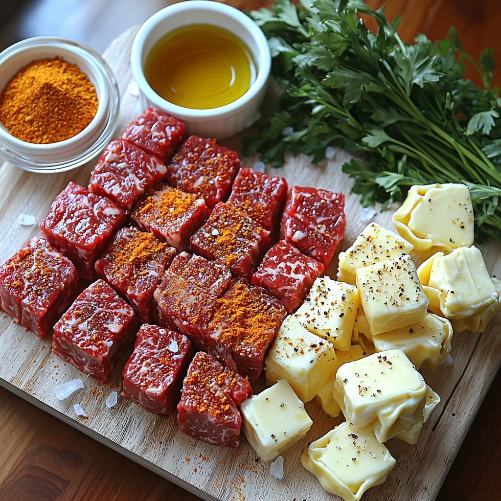 - 1 lb ribeye or sirloin steak, cubed: Choose a tender cut for juicy, flavorful bites that stand up well to searing.