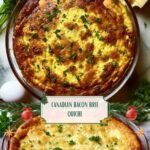 This Canadian Bacon and Brie Crustless Quiche is a rich and savory dish perfect for brunch or a light dinner. Featuring a creamy blend of eggs, mayonnaise, and parmesan cheese, it’s filled with tender cubes of brie and savory Canadian bacon arranged in a pie dish, making it a delicious, low-carb alternative to traditional quiches with a crust.