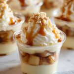 - Assemble the Dessert Cups: In small dessert cups or jars, start by spooning a layer of the cooked apple filling. Drizzle caramel sauce over the apple layer to add richness.