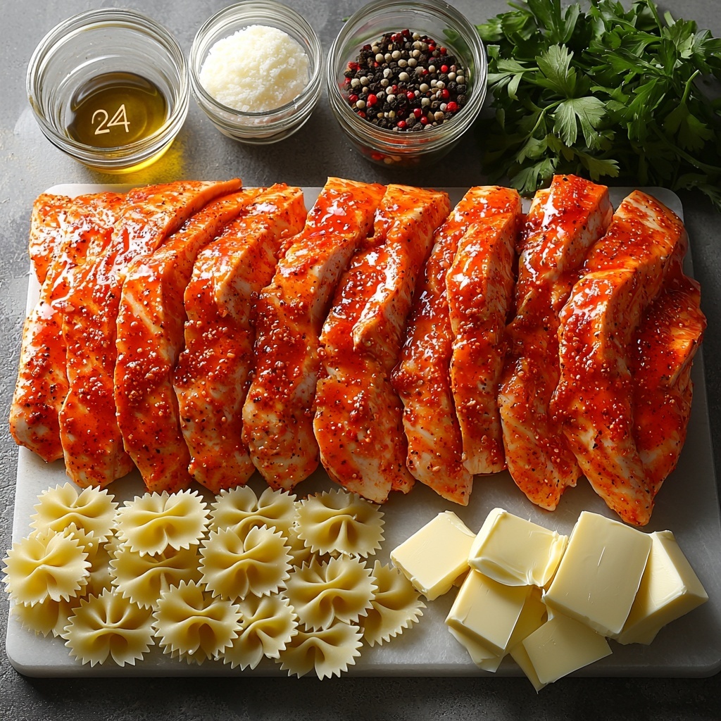 - Cook Pasta: Bring a large pot of salted water to a boil. Add the bowtie pasta and cook until al dente according to package instructions. Drain the pasta, reserving ½ cup of the pasta cooking water for later use.