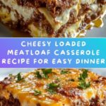 This Cheesy Loaded Meatloaf Casserole is a comforting, hearty meal that combines seasoned ground beef with a creamy mashed potato topping, melted cheddar cheese, and crispy bacon. Baked to perfection, this casserole is perfect for a family dinner, offering layers of robust flavors and a satisfying texture.