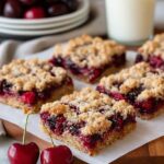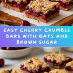 These Cherry Crumble Bars feature a deliciously sweet and tangy cherry filling sandwiched between layers of buttery oat crumble. Perfect as a snack or dessert, these bars combine fresh cherries with a crunchy, golden topping baked to perfection for a delightful treat.