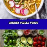 This Chicken Pozole Verde recipe is a vibrant, hearty Mexican soup featuring tender chicken thighs simmered in a flavorful green tomatillo broth with hominy, corn, and a perfect blend of spices. Topped with fresh cilantro, lime, avocado, radishes, and cabbage, it offers a delicious balance of tangy, savory, and crunchy textures, perfect for a comforting meal.