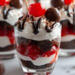 This Chocolate Cherry Brownie Parfait is a decadent, no-bake dessert featuring layers of rich chocolate brownies, creamy chocolate pudding, and juicy cherries. Topped with whipped cream and optional chocolate shavings, this elegant parfait is quick to assemble and perfect for satisfying any chocolate lover’s cravings.