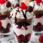 - Repeat Layers: Continue layering brownies, pudding, and cherries until the glasses are filled, finishing with a dollop of whipped cream on top.