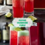 Celebrate the holidays with this festive and refreshing Christmas Champagne Punch. Combining cranberry juice, pink lemonade, limeade, and brut champagne, this punch is perfect for parties and gatherings. The addition of club soda and water lightens the mixture, while optional lime sherbet and lime slices add a festive touch and garnish.