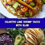 Cilantro Lime Shrimp Tacos with Creamy Slaw are a vibrant and refreshing meal perfect for a quick weeknight dinner. Tender shrimp are marinated in a zesty blend of lime juice, smoked paprika, and fresh cilantro, then seared to perfection. Served on warm tortillas with a creamy, tangy slaw made from shredded cabbage and Greek yogurt, these tacos offer a delightful balance of flavors and textures with a hint of avocado creaminess.