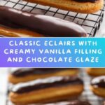This Classic Eclair Recipe features delicate choux pastry shells filled with a rich vanilla pastry cream and topped with a smooth chocolate ganache. Perfect for an elegant dessert or special occasion, these éclairs combine a light, airy texture with creamy filling and a luscious chocolate glaze.