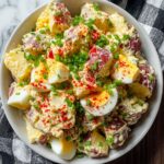 This Classic Southern Potato Salad is a creamy, flavorful side dish made with tender red potatoes, a zesty mayonnaise-based dressing, and classic additions like celery, onion, hard-boiled eggs, and sweet pickle relish. Garnished with paprika and fresh parsley, it’s a perfect accompaniment for barbecues, picnics, and family dinners.