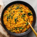 Once the lentils are tender, stir in the fresh spinach or kale. Let the greens wilt softly for about 2 to 3 minutes, adding a pop of vibrant color and a fresh, earthy taste. Finish with the juice of one lemon to add a bright, zesty contrast that balances the richness and elevates the entire dish.