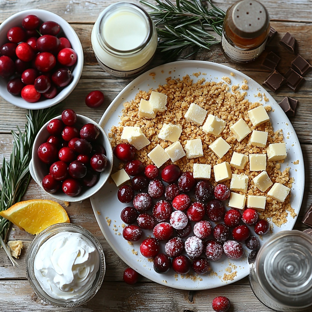 This Cranberry White Chocolate Tart Recipe thrives on a handful of simple, quality ingredients. Each one plays a vital role, from the crunchy, buttery crust to the silky filling and the tangy cranberry topping, making the overall taste an absolute showstopper.
