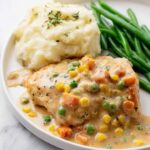 This creamy and comforting Cream of Chicken Soup Chicken Breasts recipe features tender chicken cutlets cooked in a savory cream of chicken soup sauce with mixed vegetables. It’s an easy stovetop dish perfect for a quick weeknight dinner rich in flavor and satisfying textures.