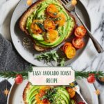 This delicious avocado toast recipe is a quick, healthy, and flavorful breakfast or snack option featuring ripe avocado mashed with fresh lemon juice, seasoned with salt, pepper, and olive oil, then topped with juicy cherry tomatoes, tangy feta cheese, and fresh basil leaves on toasted whole-grain bread.