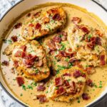 This Creamy Bacon Chicken recipe combines crispy bacon and tender chicken cutlets in a rich, velvety cream sauce flavored with garlic and lemon. It’s an easy skillet-cooked dish perfect for a comforting weeknight dinner that serves four.