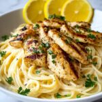 This Creamy Chicken Linguine is a delightful pasta dish featuring tender, seasoned chicken breast simmered in a rich and flavorful creamy sauce made with butter, garlic, Dijon mustard, and Parmesan cheese. Tossed together with perfectly cooked linguine and finished with fresh parsley and a hint of lemon juice, this recipe offers a comforting yet sophisticated meal perfect for weeknight dinners or special occasions.