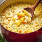This Creamy Chicken Noodle Soup is a comforting and hearty dish perfect for any day. It features tender shredded chicken, sautéed vegetables, pasta, and a luscious creamy broth enriched with butter, flour, and heavy cream. Enhanced with fresh dill and salt-free seasoning, this soup delivers a flavorful meal that’s both satisfying and nourishing.