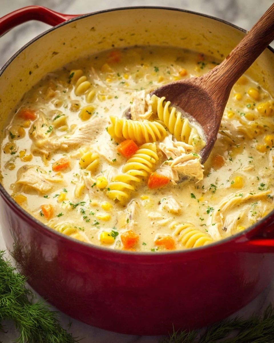 One of the joys of this Creamy Chicken Noodle Soup Recipe is how well it welcomes garnishes. Sprinkle some freshly chopped dill or parsley on top for color and lift. A grating of sharp Parmesan or a few cracks of black pepper can add an extra level of indulgence. For a little zing, a squeeze of fresh lemon juice brightens the soup beautifully just before serving.
