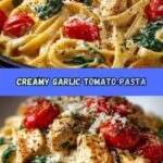 Creamy Garlic Tomato Chicken and Spinach Fettuccine Recipe