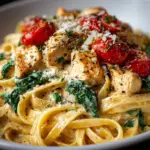 Creamy Garlic Tomato Chicken and Spinach Fettuccine Recipe