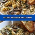 This Creamy Mushroom Pasta Soup is a comforting and flavorful dish featuring sautéed mushrooms and onions in a savory broth with tender pasta, finished with rich cream and Parmesan cheese. Perfect for a cozy meal, it combines earthy mushrooms, aromatic herbs, and creamy textures for a satisfying soup.
