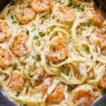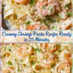 This Creamy Shrimp Pasta recipe features tender shrimp and fettuccine tossed in a luscious Parmesan cream sauce, elevated with a splash of white wine and aromatic garlic and onion. Ready in just 25 minutes, it’s a perfect quick and elegant dinner dish for seafood lovers.