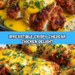 This Crispy Cheddar Chicken recipe features juicy, tender chicken breasts coated in sharp cheddar cheese and buttery crushed crackers, baked to golden perfection. The flavorful blend of garlic, onion, paprika, and a crispy cheese crust creates a delicious main course ideal for family dinners or weeknight meals. Garnished with fresh parsley for a pop of color, this easy-to-make dish delivers comfort and crunch in every bite.