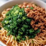 Remove from heat and dish out into bowls. Top with chopped green onions, crushed roasted peanuts, and optional chili oil for a little extra fire. If you love fresh herbs, sprinkle a bit of cilantro on top before serving. And there you have it—your irresistible bowl from Dan Dan Noodles: A Delicious Guide to This Spicy Sichuan Classic Recipe!