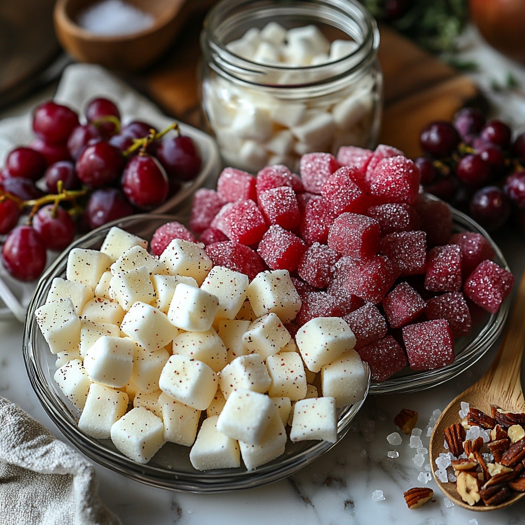 Gathering these simple yet essential ingredients is your first step to crafting this delightful treat. Each component plays a unique role, from the tangy cranberries adding a punch of vibrancy, to the fluffy marshmallows enhancing sweetness and texture, not to mention the fresh fruits and creamy whipped topping that bring everything together harmoniously.