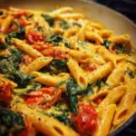 This Delicious Spinach Tomato Pasta is a quick and flavorful Italian-inspired vegetarian main course. Featuring tender pasta tossed with sautéed garlic, burst cherry tomatoes, and fresh spinach, finished with Parmesan cheese and optional red pepper flakes for a subtle kick. It’s perfect for a vibrant weeknight dinner or a satisfying meal prep option.