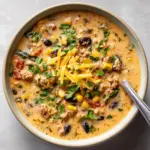 This Easy Creamy Taco Soup is a flavorful and comforting Mexican-inspired dish perfect for a quick weeknight dinner. Ground beef or turkey is sautéed with onions and garlic, then simmered with taco seasoning, Rotel tomatoes, black beans, corn, and chicken broth. Cream cheese and sour cream are stirred in to create a rich, creamy texture. Garnished with fresh cilantro and shredded cheese, it’s an easy go-to soup that’s both hearty and delicious.