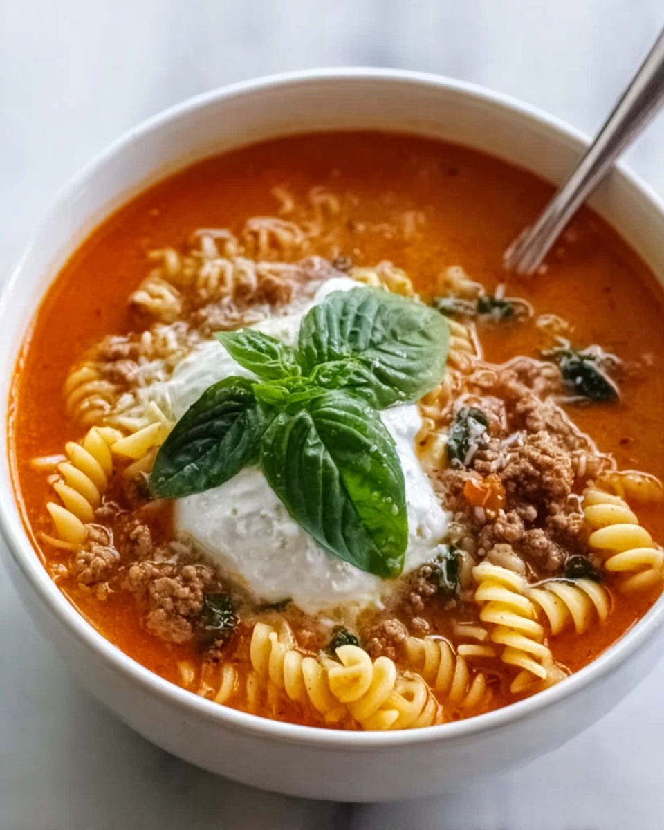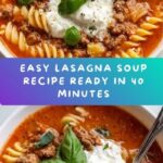 A comforting and hearty Easy Lasagna Soup that brings all the classic flavors of traditional lasagna into a warm, ready-in-40-minutes soup. This recipe uses ground beef or Italian sausage, crushed tomatoes, and broken lasagna noodles, combined with creamy ricotta and melted mozzarella for a deliciously satisfying meal perfect for any day of the week.