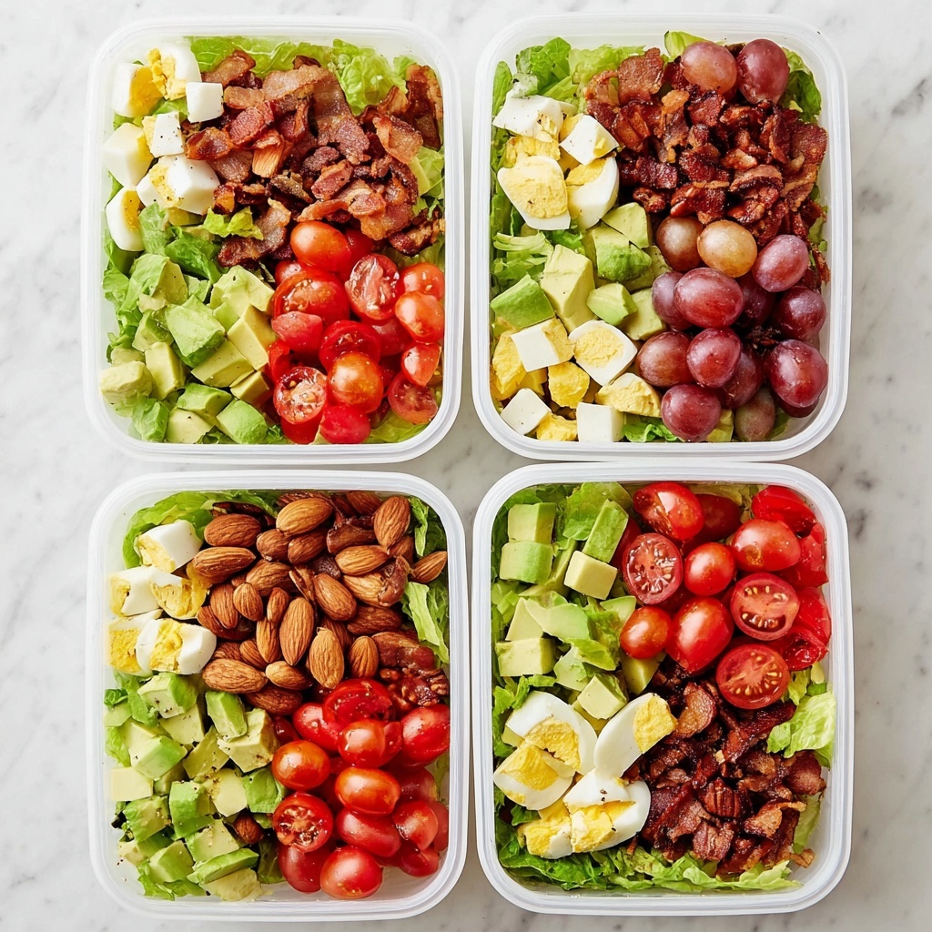 Once assembled, your Easy Lunchbox Cobb Salads Recipe stays fresh for several days in the fridge, provided it’s tightly covered. Keep dressings separate until you’re ready to eat to prevent sogginess and enjoy every crisp bite just like the first day.