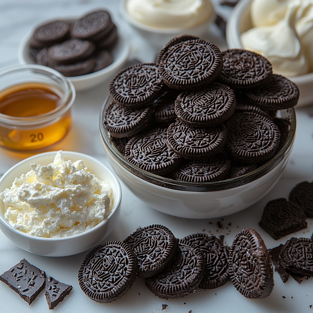 Getting started with the Easy No-Bake Oreo Pie Everyone Will Love Recipe is a breeze because the ingredients are simple yet essential for that perfect balance of flavor and texture. Each element plays its part, from the Oreo crust providing crunch and chocolate intensity to the creamy filling delivering that melt-in-your-mouth sensation.