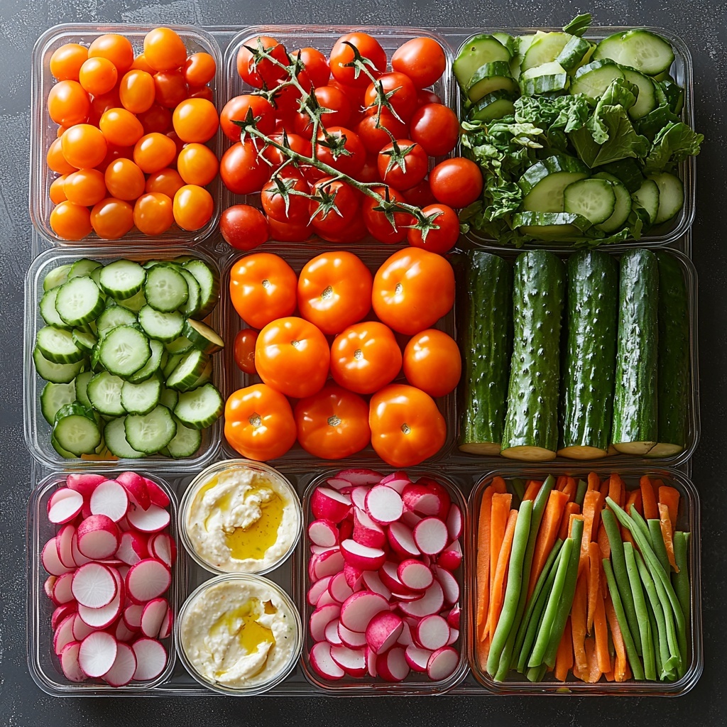 - Feel free to substitute or add other fresh vegetables as desired to customize the tray.