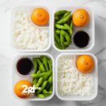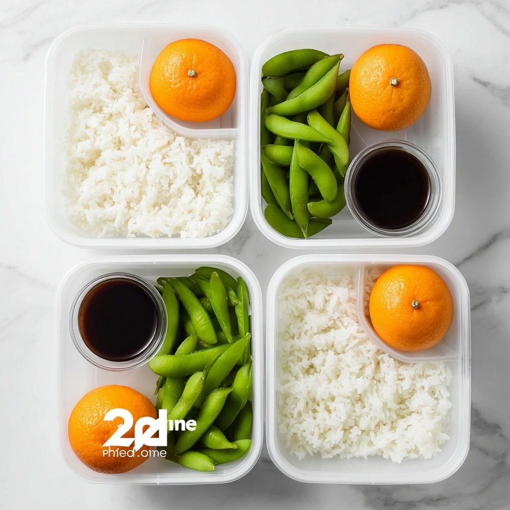 - Assemble Lunchboxes: Evenly divide the cooked white rice and steamed edamame among four lunchboxes. Drizzle each portion with two ounces of soy sauce for added flavor.