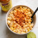 - Season and finish: Stir in the Everything But The Elote seasoning blend to taste, then squeeze fresh lime juice over the mixture to balance the sweetness. Mix well and serve immediately, optionally garnished with extra seasoning on top.