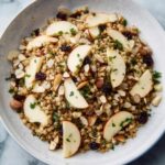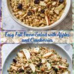 A vibrant and hearty Fall Farro Salad combining nutty farro grains with crisp honeycrisp apple slices, tart dried cranberries, toasted almonds, and fresh herbs. Tossed in a bright lemon-olive oil dressing, this salad is perfect as a wholesome lunch or a festive side dish for autumn gatherings.