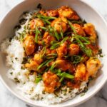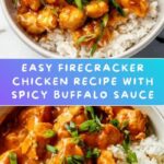 This Firecracker Chicken recipe features crispy, tender chicken pieces coated in a sweet and spicy buffalo sauce. Perfectly pan-fried and tossed in a flavorful homemade sauce with brown sugar, vinegar, and crushed red pepper flakes, this dish delivers a spicy kick balanced with a touch of sweetness. Garnished with fresh scallions, it’s ideal served over rice or noodles for a quick and satisfying meal.